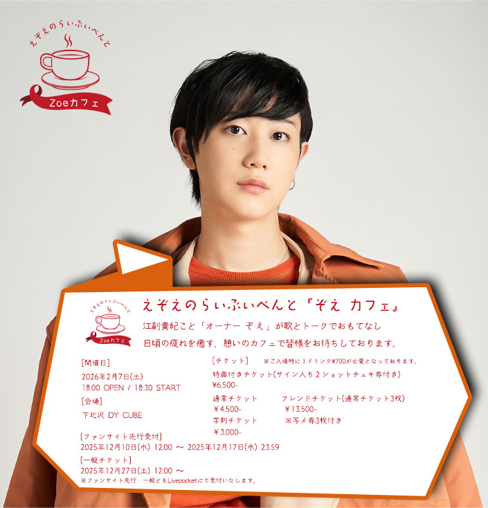 TICKET 一般 ¥3,300/学割 ¥2,300(各+1drink¥700)