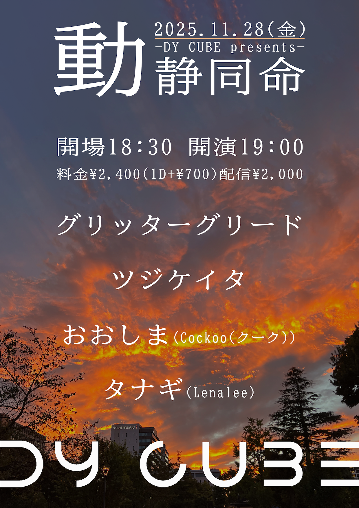TICKET adv.¥2,500 / door ¥3,000 / 学生 ¥1,000(各+1drink ¥700)