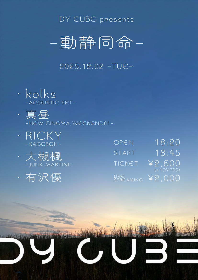TICKET adv.¥3,000 / door ¥3,500(各+1drink ¥700)